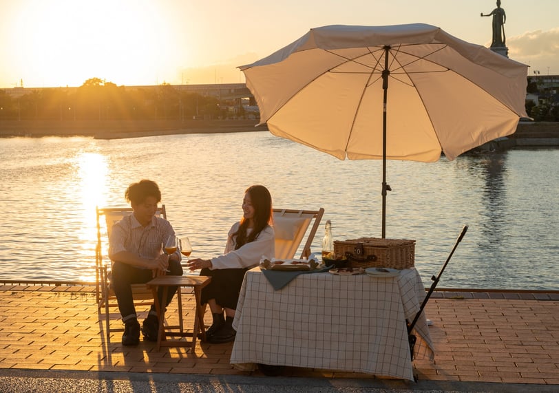 このプランは、「Sakai Good Terrace Project」と連動していて、堺旧港エリアのにぎわいづくりの一環として始まったんやって。サンセットや海風を感じながら、手ぶらで楽しめるのが魅力やで。