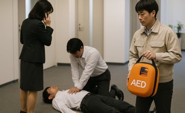 AEDは「自動体外式除細動器」の略称で、心臓が止まった人(心臓がけいれんしている状態)に電気ショックを与え、心臓の鼓動を正常なリズムに戻す医療機器なんよ。誰でも使えるよう設計されていて、電源を入れると自動音声で操作を案内してくれるんやわ。電極パッドを貼り付けると、機器が自動で心臓の動きを解析し、電気ショックが必要かどうかを判断する仕組みやねん。