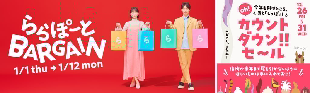 ららぽーと公式通販サイト「&mall」では、2025年12月26日(金)から2026年1月12日(月・祝)まで、「&mall BARGAIN」が実施されるで。最大80%オフと案内されていて、ららぽーと堺のセールとあわせてチェックできるで。