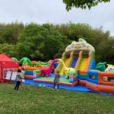 会場内にはキッチンカーが出店し、縁日企画も実施予定。あわせて、15m×20m級の超大型エア遊具が設置されると発表されてるんよ。巨大すべり台やトランポリンが含まれていて、利用料金は1人1回15分500円(税込)やねん。